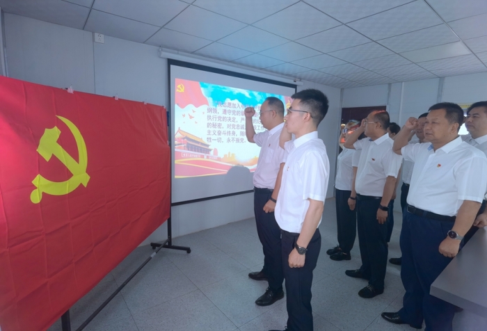 党支部书记王小龙带领新党员入党宣誓,老党员一起重温入党誓词。